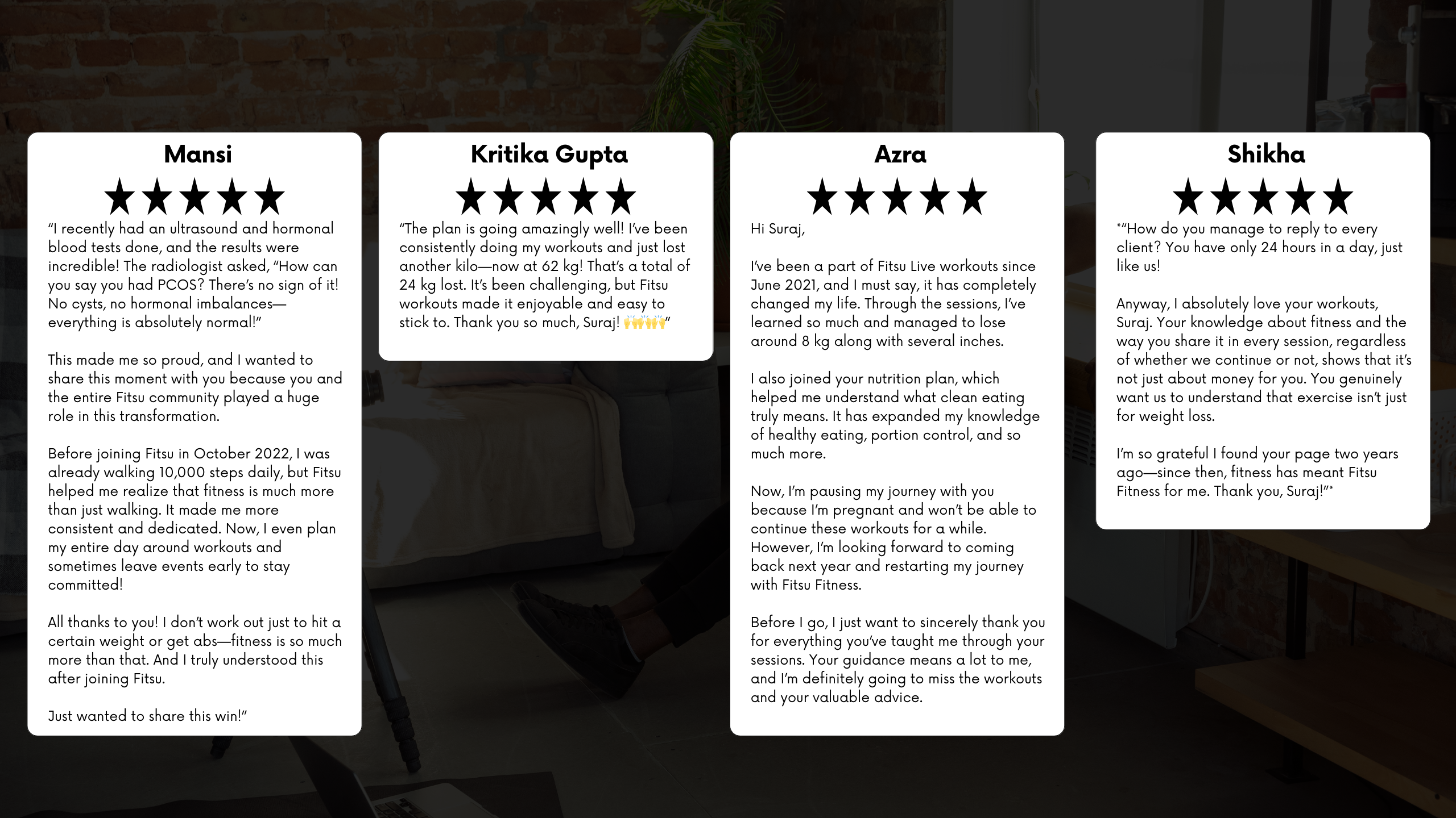 Interactive fitness sessions with Suraj streamed live (recording available) which can be done from anywhere, anytime